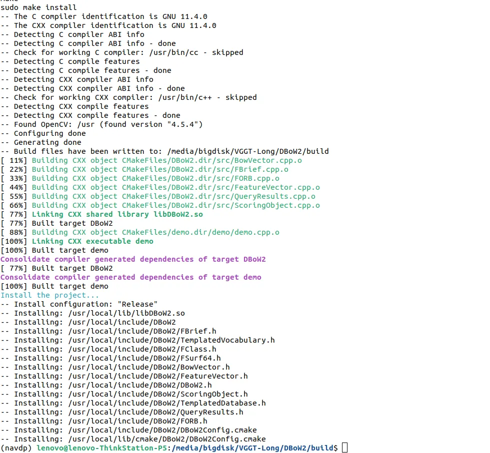 cd DBoW2mkdir -p build && cd buildcmake ..makesudo make installcd ../..