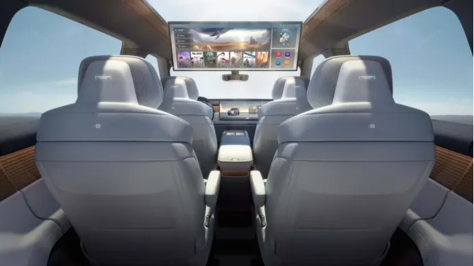据了解,ID. Era 9X由大众与上汽集团合资开发,车身长达205英寸,轴距达120.8英寸,宽78.6英寸,高71.2英寸,整体体量远超传统大众SUV,甚至接近超豪华品牌水准。设计语言走极简而恢弘路线,线条干净利落,轮廓沉稳大气,被外媒形容为有揽胜的气场却更加内敛。这种风格意在传递低调奢华,契合中国高端消费者对低调的偏好。尽管外观极具未来感,ID. Era 9X并未采用纯电平台,而是选择增程式电动(EREV)技术路线,新车搭载1.5T涡轮增压发动机作为增程器并搭配单电机后驱或双电机四驱,配备65.2 kWh电池组,CLTC纯电续航约249英里,综合续航超过600英里,彻底消除里程焦虑。内饰虽未完全公开,但从已曝光图片显示,前排采用贯穿式全屏设计,几乎取消所有物理按键,强调数字沉浸感,后排配备大尺寸折叠娱乐屏,营造移动私人影院体验,六座布局(2+2+2),第二排独立座椅预计支持通风、加热、按摩及大角度调节。