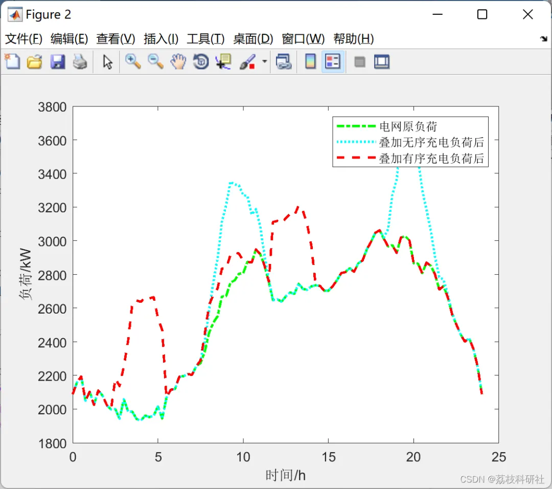 %利用蒙特卡洛模拟法模拟出电动汽车负荷曲线%同时求解出无序充电功率曲线,作为有序充电曲线的对比基础clc;clear;Ntest=100;%仿真程序 车辆数SOC_end=0.9;Pbiao=15;%充电功率为15kWnn=0.9;%充电效率为0.9Pcharge=Pbiao*nn;%实际充电的功率Cbattery=30; %电池容量distance=unifrnd(30,80,1,Ntest); %Ntest辆车 每辆车的单程距离judge=0.15*distance/Cbattery; %单程耗电SOCSOC=rand(1,Ntest).*(1-judge)+judge; %初始SOCtimestart=8; %8点离家timework=normrnd(8.5,0.5,1,Ntest); %到班时间,服从正态分布timerest=normrnd(17.5,0.5,1,Ntest); %下班时间timehome=normrnd(19,0.5,1,Ntest); %到家时间,由于上下班高峰路况复杂,所以不认为下班回家耗时与上班耗时相同SOC=SOC-judge;battery=SOC*Cbattery; %到班后的电量time1=zeros(1,Ntest);time2=zeros(1,Ntest);%SOC记录数组SOC_sa=ones(1,Ntest);SOC_sb=ones(1,Ntest);for i=1:NtestifSOC(i)<judge+0.2SOC_sa(i)=SOC(i); time1(i)=timework(i); %到班后需要充电,充电开始时间为到班时间 time2(i)=time1(i)+(1-SOC(i))*Cbattery/Pcharge; %充电结束时间,充电功率PchargeSOC(i)=SOC_end; %下班前充满电