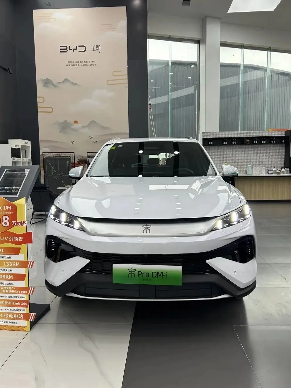 尺寸是4726×1880×1720毫米,轴距2712毫米,配置和动力都跟宋Pro DM-i差不多,163马力的输出,亏电油耗3.38L,也能加92号汽油。
