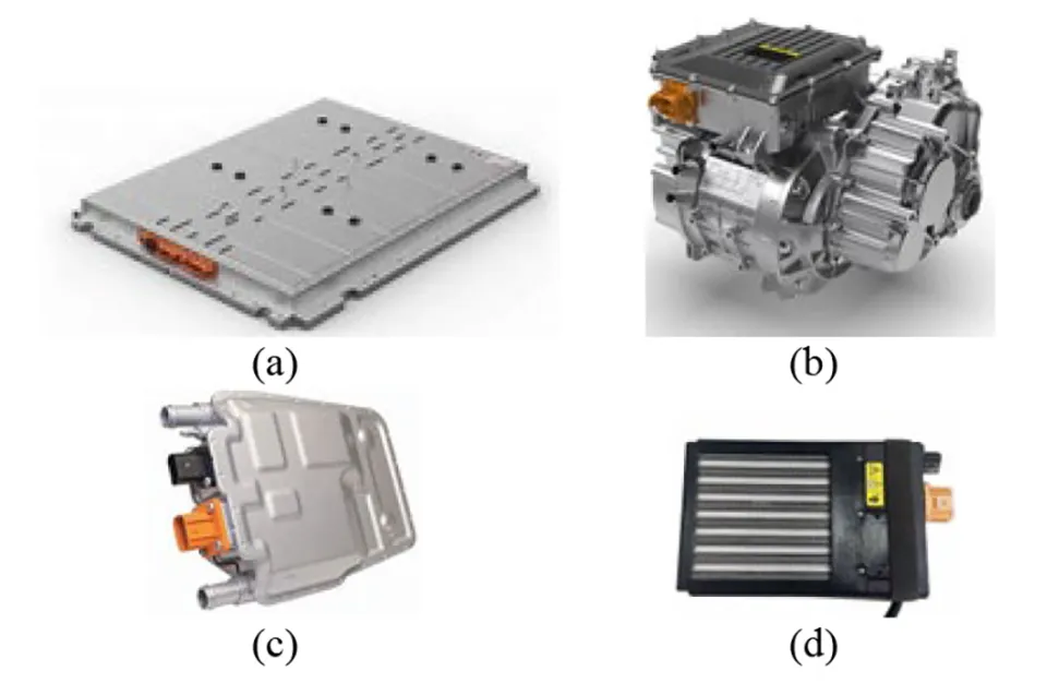 图 6电动动力系统组件:(a)高压电池;(b)电动动力系统;(c)高压热水器(HVWH);(d)正温度系数(PTC)加热器
