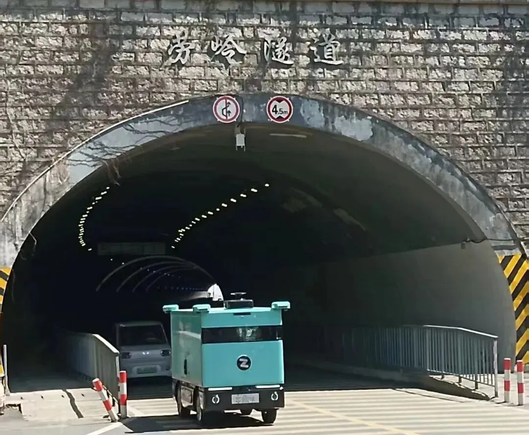 方正造型的无人车沿山路平稳行进,灵活完成会车避让,精准实现隧道穿行,从容应对复杂路况,这科技感十足的一幕,为青山绿水增添了一道亮丽的风景线。