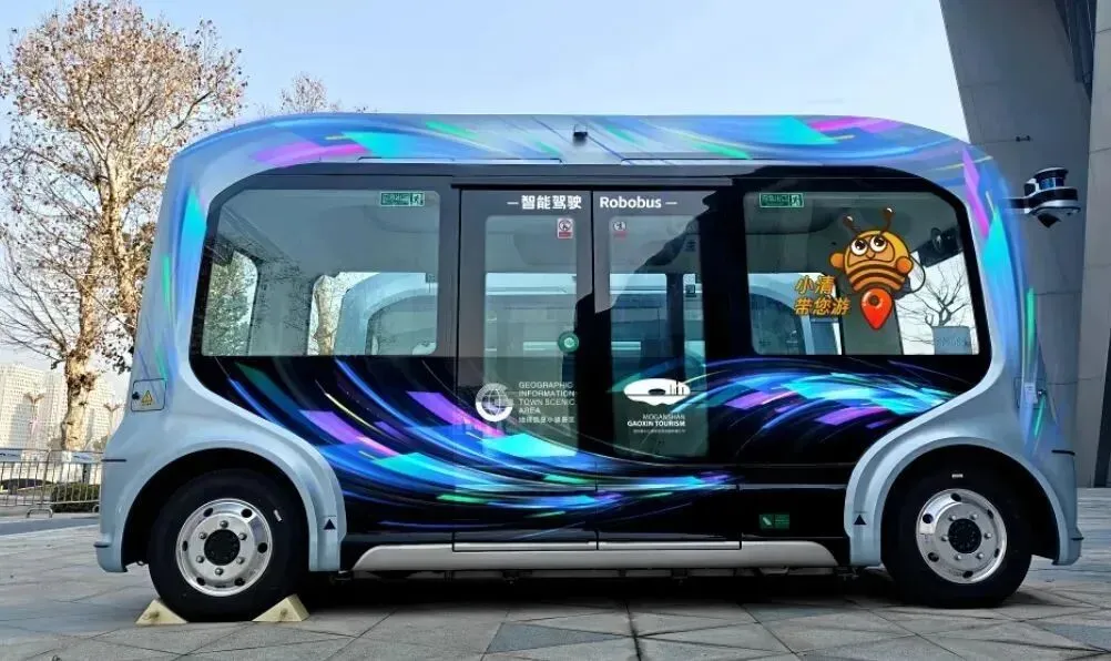 在下渚湖景区,智能驾驶微循环巴士载着游客往返各个景点。