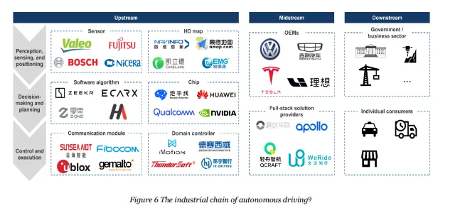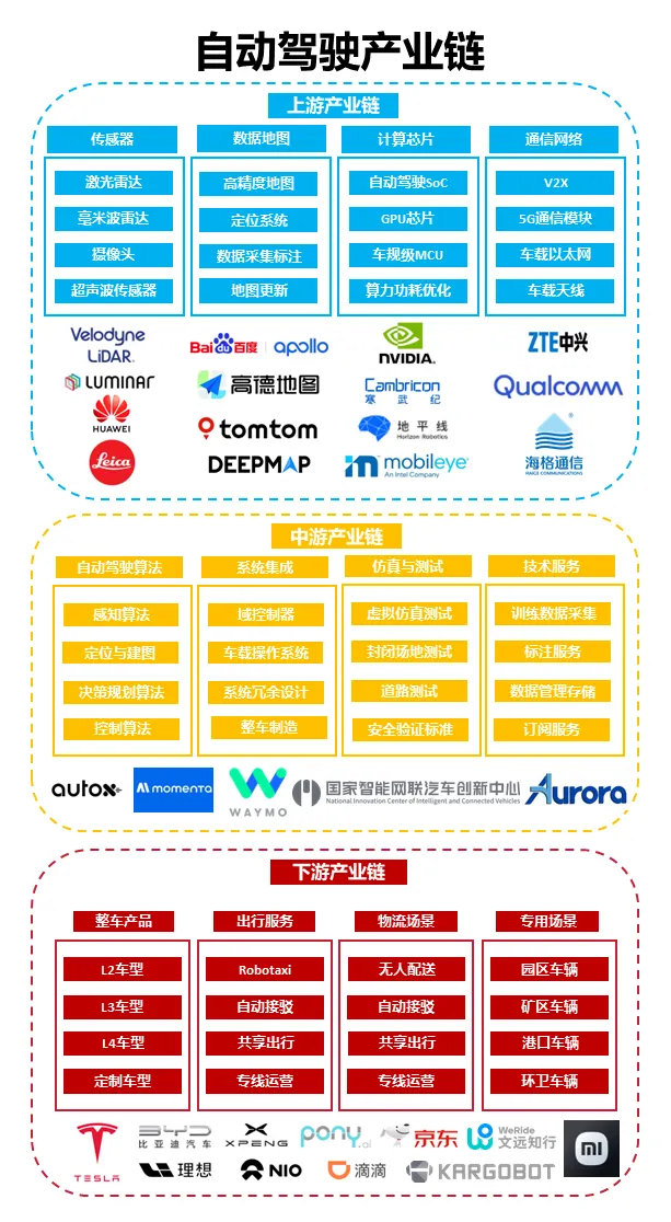 整体来看,自动驾驶产业链正从“技术驱动”阶段逐步迈向“工程落地与商业验证”阶段。上游在传感器、算力芯片和数据要素上持续迭代,为系统能力提供基础支撑;中游围绕算法、系统集成和测试验证展开激烈竞争,工程化与规模交付能力成为分水岭;下游则在整车产品、物流和专用场景中率先跑通应用模型,出行服务仍处于谨慎探索期。
