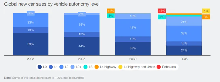 业内普遍判断,即便到 2035 年,L4 自动驾驶在新车中的占比也不会太高,真正的突破,可能要靠无图方案和系统可靠性的持续打磨。