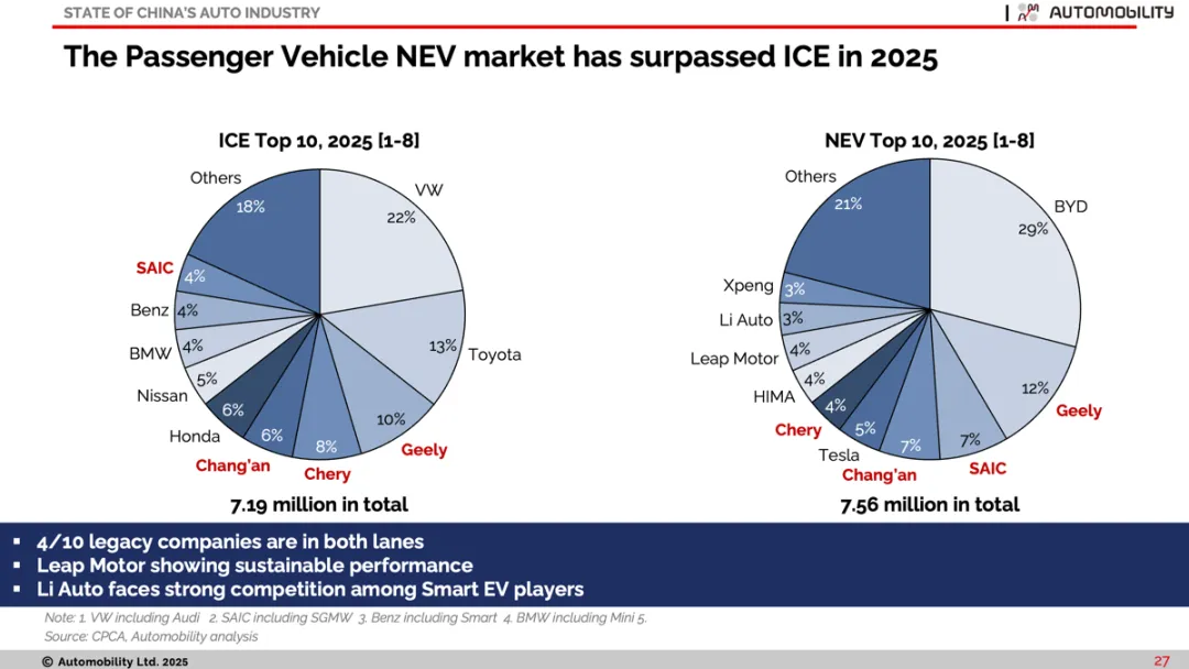 头部车企(如比亚迪、蔚来、小鹏、理想)大力推进算法、域控制器和测试验证自研,减少对外部供应商依赖,同时通过并购或深度合作形成“车企+Tier1”新格局,推动中游向智能化、舱驾一体和数据闭环方向集中化发展。