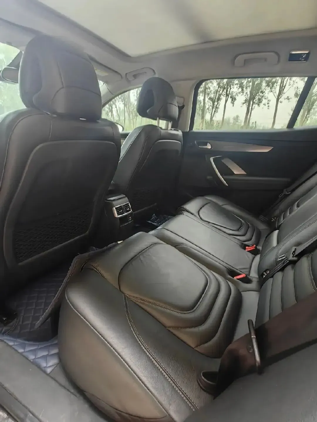 内饰配置:采用全黑真皮包裹,座椅带有细腻的菱形缝线,支撑性与包裹性极佳;配备全景天窗,可大幅提升车内通透感;后排空调出风口与 USB 充电接口,照顾到每一位乘客的体验;后备箱常规容积 460L,放倒后排座椅后可扩展至 1280L,满足家用与自驾的储物需求。
