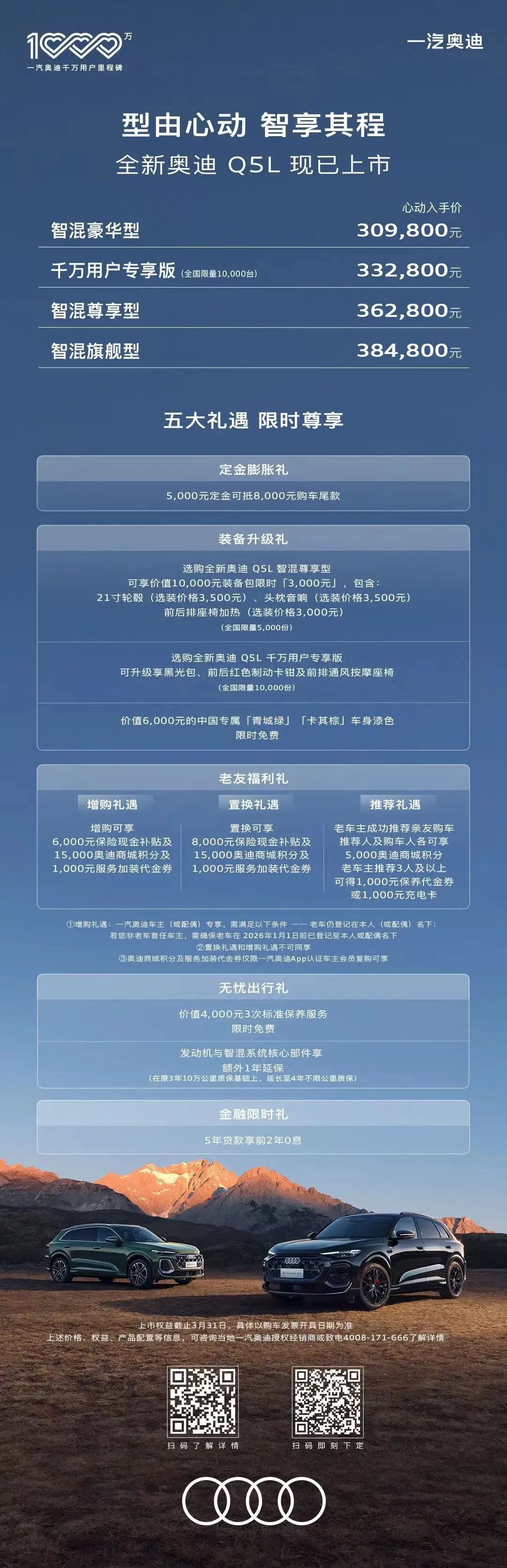 ▲全新奥迪Q5L上市,专属订车权益现已开启