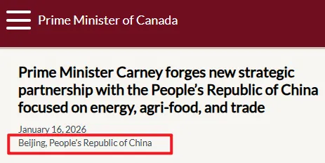 参考链接:https://www.pm.gc.ca/en/news/news-releases/2026/01/16/prime-minister-carney-forges-new-strategic-partnership-peoples