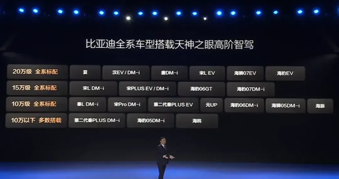 这一年,在年初,比亚迪就打响"智驾平权"第一枪,将自研"天神之眼"系统塞进7万块的海鸥,让高速NOA功能不再是豪华车的专属,而是10万级家用车的标配;