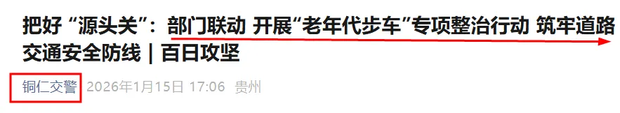 近期,多地开展低速电动车隐患问题全链条整治。1月13日,贵州铜仁江口县公安交警大队联合市场监督管理局组,成立联合检查组,对县城区内老年代步车门店、销售商户开展了专项执法检查与普法宣传活动,重点核查商家的库存情况、进销货台账以及车辆来源渠道是否合法。