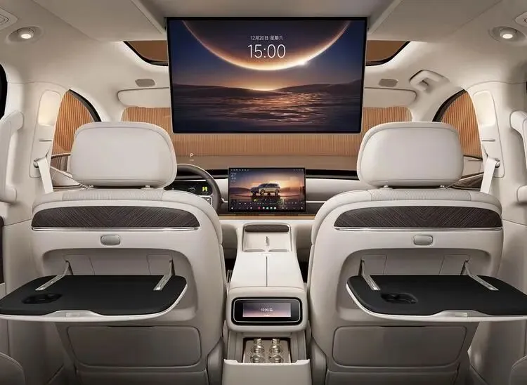 零跑D19车内配备了10.25 英寸液晶仪表+17.3英寸中控屏+6英寸后排多功能控制屏+21.4 英寸3K电动娱乐屏,以及60英寸R-HUD、二排零重力座椅、冷暖冰箱、二排双折叠桌板、车载制氧机、手机无线充电面板、主驾头枕音响。还将首发高通骁龙双8797至尊芯片,算力可达1280TOPS,支持VLA辅助驾驶。