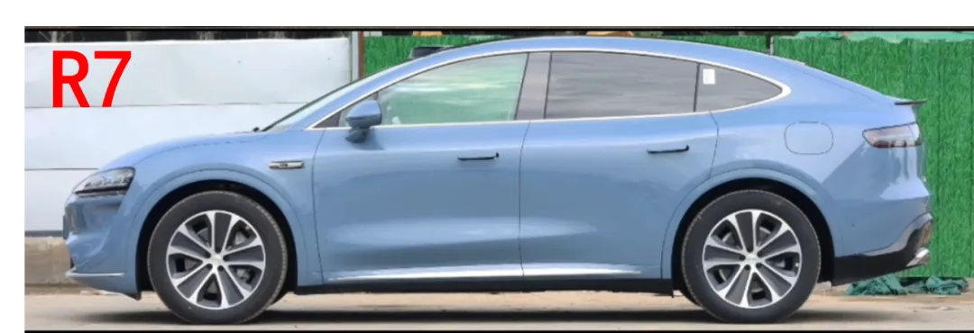 垫底的是某届R7。整车设计依旧是某届全系都有的肥头大耳设计,短胖的车头,肥大的驼背,再加上前低后高的侧面姿态,整体看起来就像一只大肥虫,比例完全没有一点的美感可言。论谁给AI都生成不出这么丑的腰线和侧面线条,我甚至怀疑设计师是隔壁法务部拉来凑数的。
