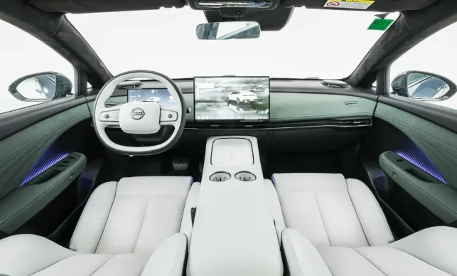 在车漆上也有丰富的颜色可以选装,相比日产N6的设计,日产N7就更运动一些,但整体轮廓还是很饱满的。配有隐藏式门把手,花瓣式轮毂和红色卡钳,这些细节元素的加持下也让日产N7更加大气,质感表现也不错,尤其是车窗采用了一体式黑漆材质,配合C柱的三角窗,既能保证车内的采光也能提升外部的质感。尾部也是采用类似轿跑的风格,车顶弧线还能营造悬浮效果,营造出更好的车身姿态,甚至有像特斯拉的感觉。不管怎样,我觉得日产还是听劝了,至少日产N7的设计没让我们失望,日产N7依旧是一台颜值很高的车型。