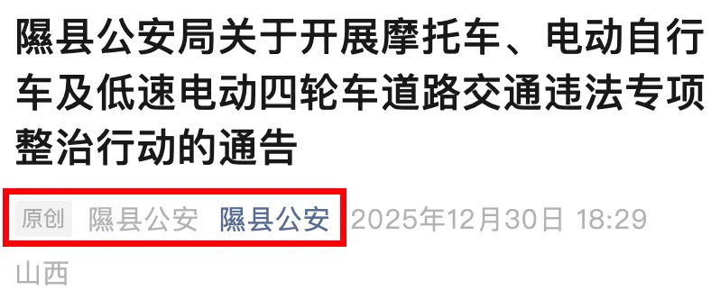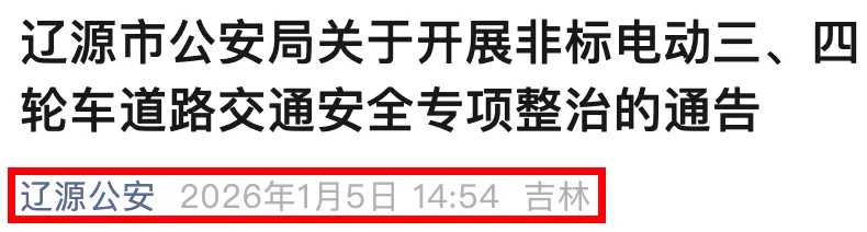 当地交管部门此前发布了《关于开展摩托车、电动自行车及低速电动四轮车道路交通违法专项整治行动的通告》。从通告发布之日起至2026年3月30日期间,当地交管部门将开展为期3个月的集中专项整治行动。