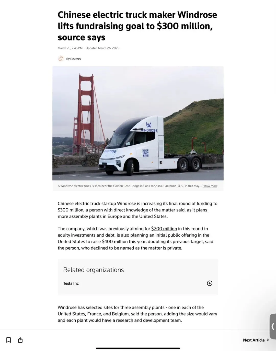 特斯拉重卡的负责人还专门发邮件给我,鼓励我们继续干,然后也很佩服我们这三年的进度,所以来自行业大佬的认可还是很牛的。