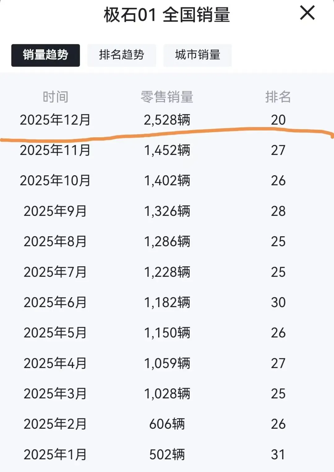 其实很简单,这款车虽然不像友商上面这些车型那么突出,但对于比较晚入局的品牌来说,极石01的销量表现也不错。