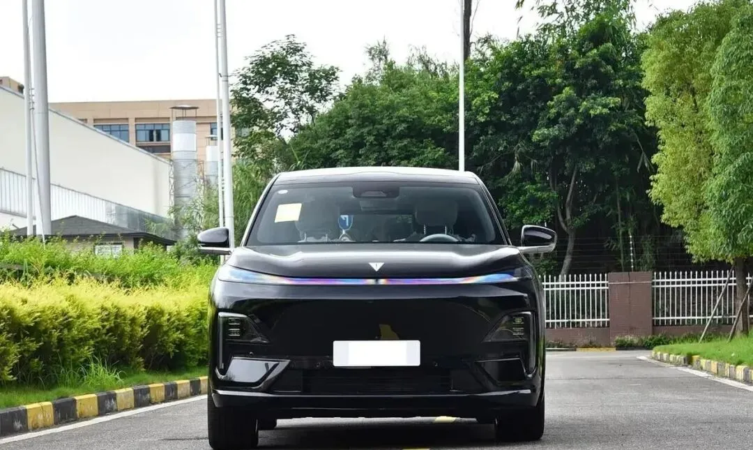我们首先来看新车的外观设计方面,深蓝S09的车头设计极具辨识度,封闭式格栅搭配LED灯光系统,营造出简洁而富有科技感的视觉效果。分体式大灯组设计独特,上方细长LED日行灯宛如星际飞船的光剑,下方大灯组支持自适应远近光切换和智能照明功能,不仅提升了夜间行车安全,还增强了车辆的时尚感。前脸下方的进气口设计巧妙,优化了空气动力学性能,同时为车辆散热提供了支持。这种设计既满足了新能源车的低风阻需求,又保持了传统SUV的硬朗气质。