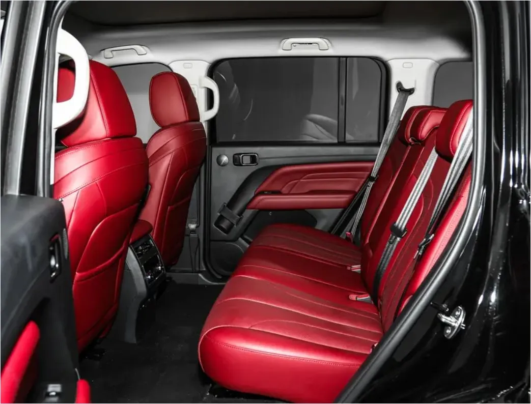 内饰颜色有好几种可选,不管哪个颜色都能营造出一定的豪华感,后排地板是纯平的,第二排座椅支持纯平放倒,露营的时候休息会方便很多。车内高度优势挺明显,175的身高在后排能有两拳多的头部空间,空间表现完全够用。配置方面升级了L2级辅助驾驶,标配4气囊,10扬声器,USB和Type-C前后都有,远程控制,自动大灯,自动驻车,360影像,底盘透视,主动刹车,自适应巡航这些该有的都有了。前后都是独立悬架,配了适时四驱系统和9种驾驶模式,越野属性上给了前桥,中央,后桥三把锁,涉水深度达到800mm,这套硬件配置确实不输普拉多。