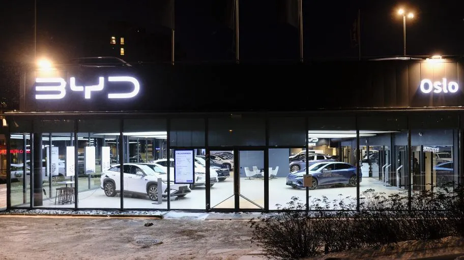 挪威首都奥斯陆的中国车企比亚迪的一家经销商门店。图源 新华社