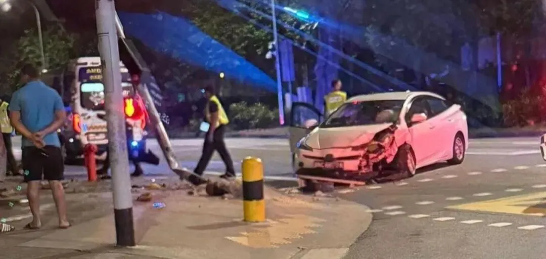 小印度凌晨车祸|轿车失控撞交通灯,司机涉酒驾被捕