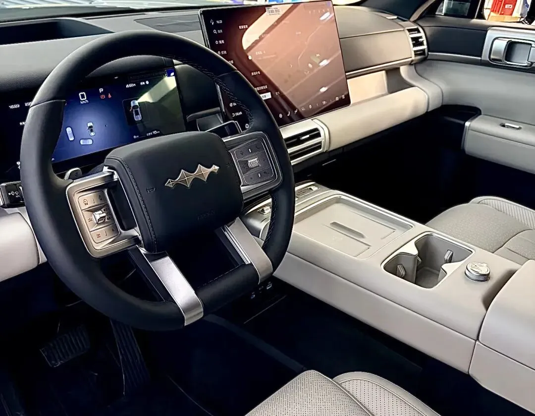 车内7屏联动,后排还能加装Pad,孩子坐车再也不闹了。中央扶手箱里藏了个冷暖冰箱(-6℃~50℃),夏天冰饮料、冬天温奶茶,这小心思确实戳人。
