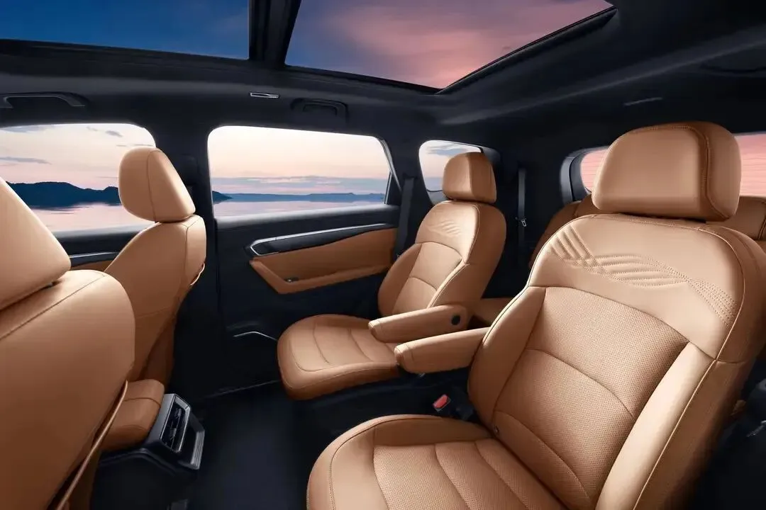高配车型配备的20英寸多条辐轮圈,是整台车的颜值加分项,运动感直接拉满。再看车身尺寸:4865mm的长度、1910mm的宽度,还有2825mm的轴距,妥妥的中型SUV体量。实际站在车旁,能明显感受到它的“大块头”,尤其是六座布局带来的尾部比例,甚至有点MPV的既视感。