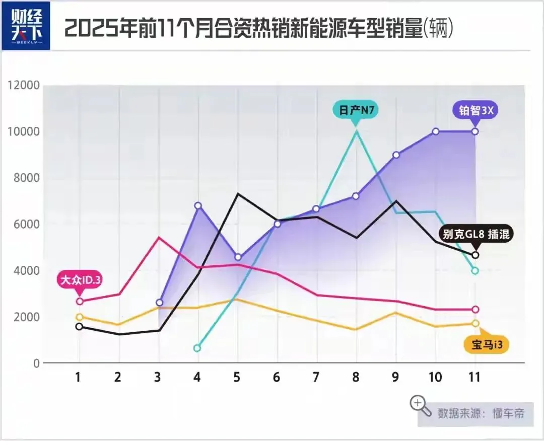 当合资品牌电动车在新能源赛道屡屡折戟时,广汽丰田铂智3X以7万辆年度销量、连续两月破万的成绩,撕开了一道突破口。这款定价10.98万-15.98万元的纯电SUV,不仅成为2025年合资新能源车销量冠军,更终结了"合资电动车=小透明"的市场认知。其背后,是一场合资车企从"技术输入"到"中国主导"的深度变革,也是传统巨头在新能源战场上的背水一战。