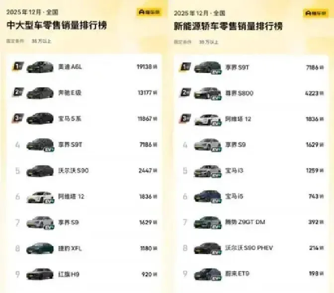 12月销量一出,享界轿旅双子星直接卖爆8815台!更狠的是,连续3个月在35万+中大型车市场稳坐前四,跟奔驰宝马奥迪正面刚。成交价还蹭蹭涨——不是销量高,是人家把“豪华”的定义都给砸碎重造了。