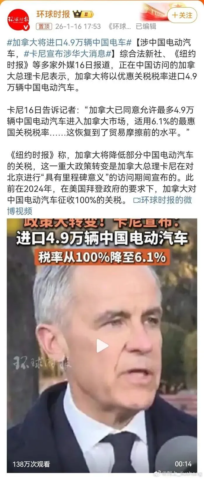 朋友,你说这波加拿大是聪明还是莽?评论区说说,你家那辆电动车,是被美国警告过,还是被加拿大欢迎过?👇