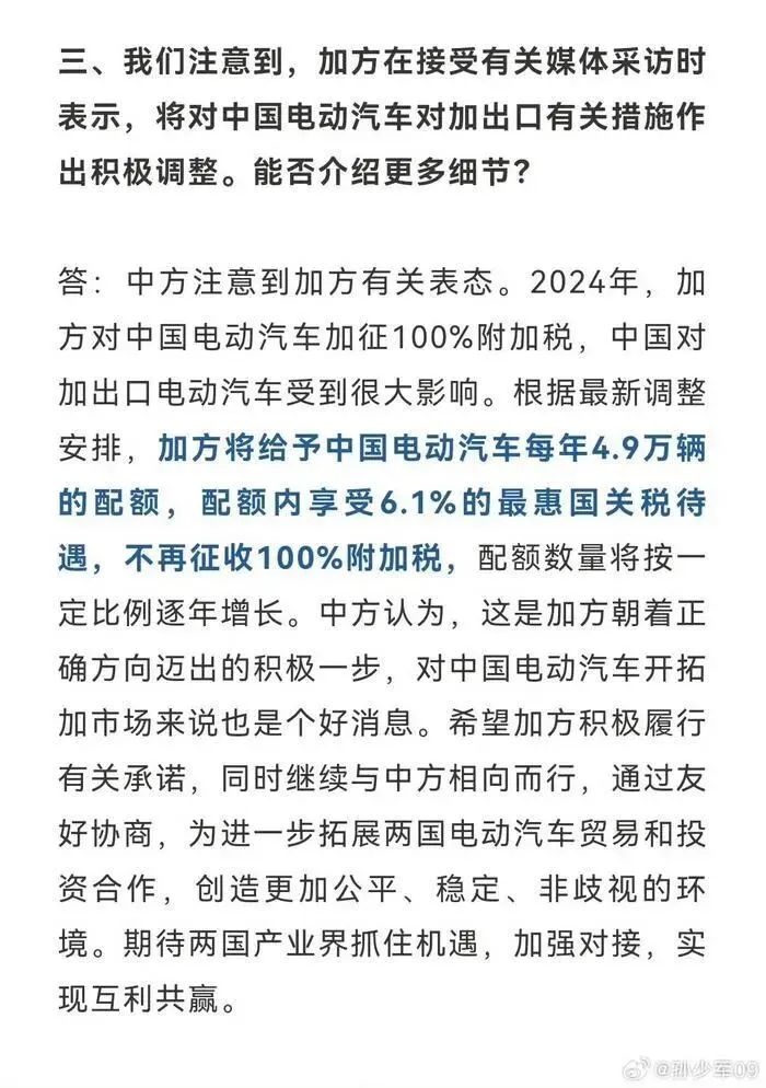 但中方一点不慌。商务部直接回怼:“这是积极一步,希望加方别放鸽子。”说得直白:电动车来,不是抢饭碗,是带活路。