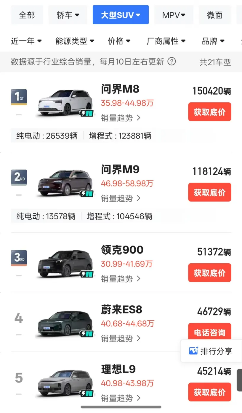 大型SUV销冠:问界M8