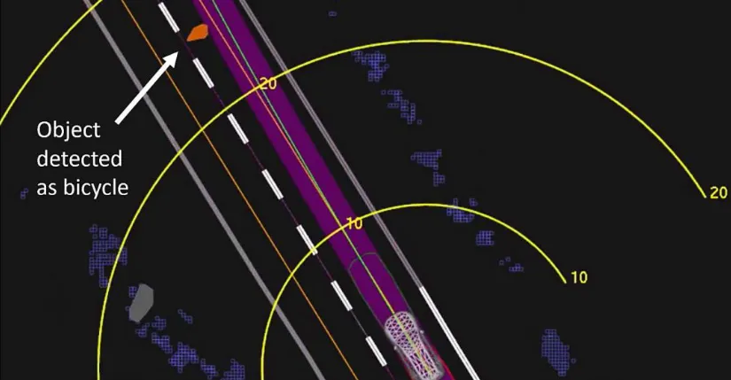 在Uber车辆撞到行人前的10秒中,车辆本来识别到这个行人并避免车祸的。但是一系列系统的误判导致了车辆未曾减速就撞了上去。报告中有几个关键数据:在9.9秒到5.8秒中,汽车从56公里加速到70公里;在5.6秒,汽车毫米波雷达(Radar)第一次检测到前方有物体,并识别其为“汽车”,5.2秒,汽车激光雷达(Lidar)第一次检测到前方物体,将其识别为“其他”,判定其静止不动。4.2秒到2.7秒,汽车对识别对象在“汽车”和“未知”之间来回摇摆,但是没有参考对物体的跟踪历史记录,最终将其判定为静止物体。