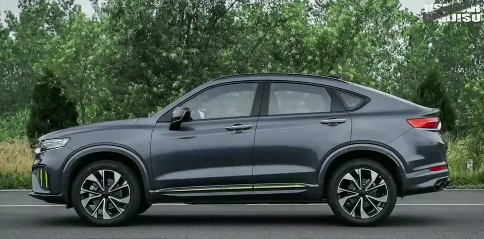 侧面这个跨界SUV的溜背造型,运动感拉满。车门把手的设计也挺有质感。
