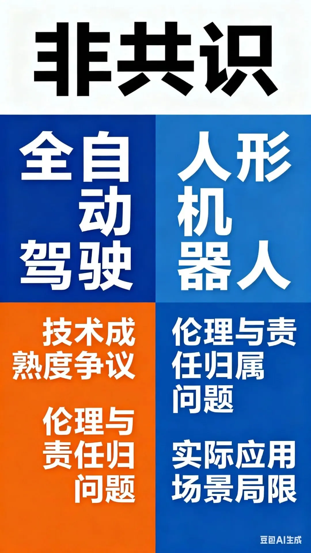 - 伦理问题相对简单:特定场景的人形机器人主要涉及效率和安全问题,而自动驾驶在事故不可避免时的道德决策(如"电车难题")引发了更复杂的伦理争议。