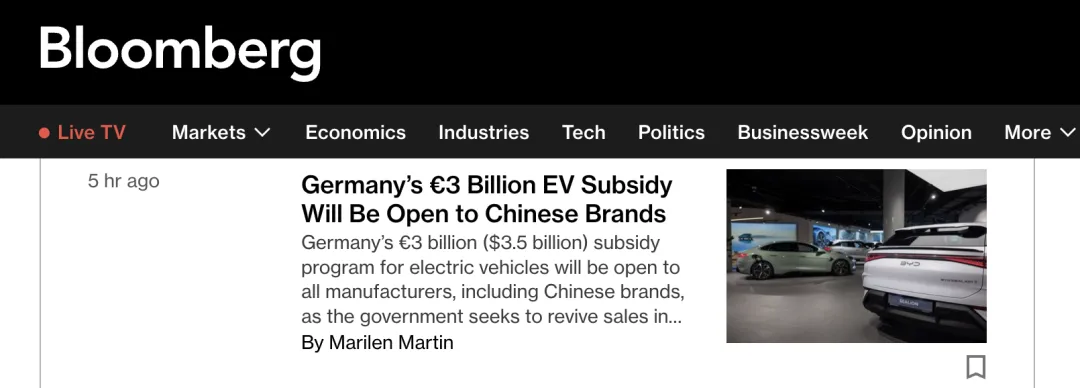 据彭博社1月19日报道,德国政府计划推出规模约30亿欧元的电动汽车补贴计划,该计划将向所有制造商开放,包括中国电动车品牌。