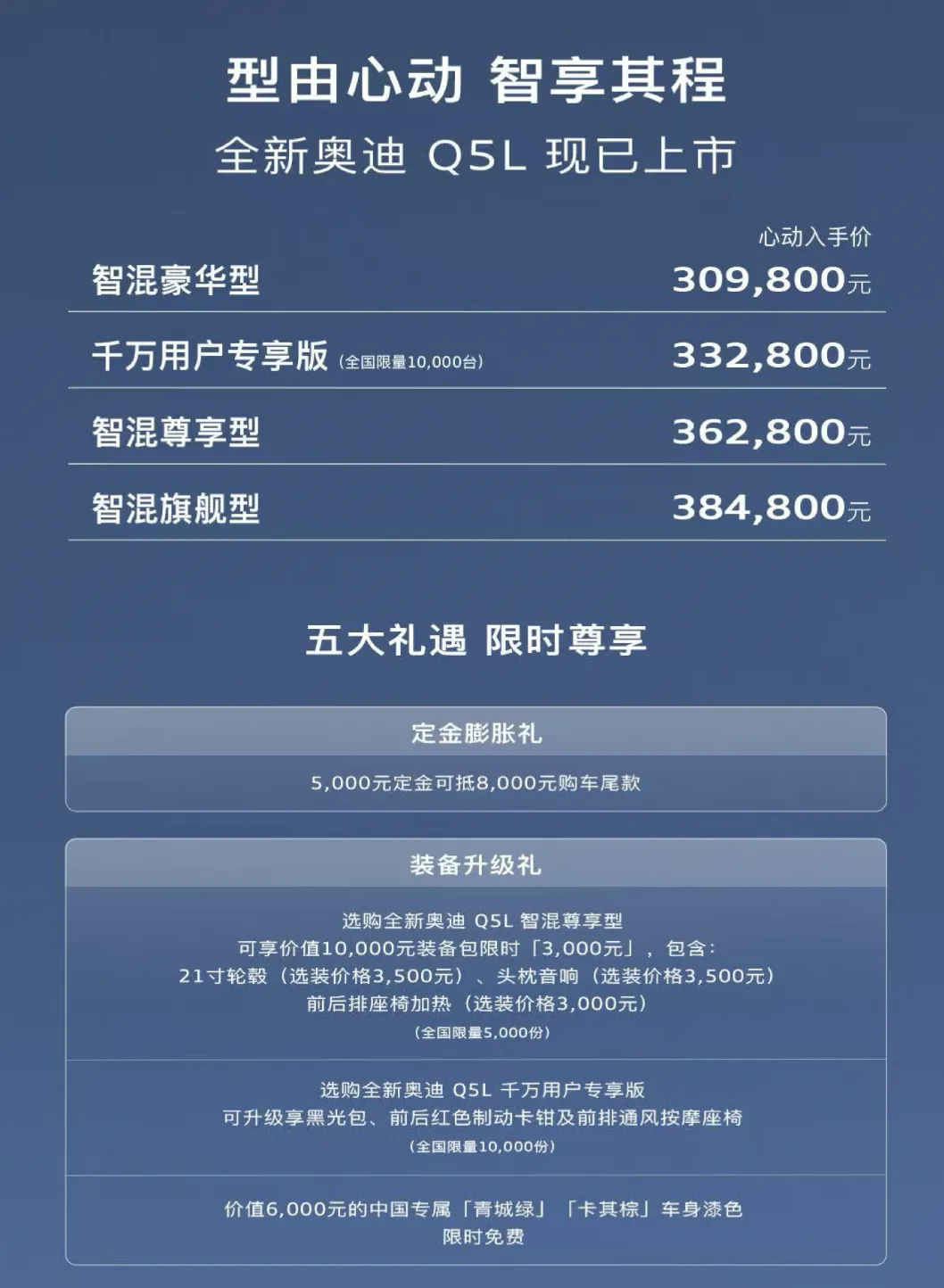 反击新势力:在理想L7、问界M7蚕食豪华市场时,Q5L以华为智驾+quattro四驱构建技术护城河,证明传统豪华品牌仍握有核心工程优势。