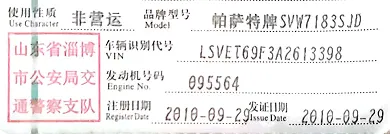 标的名称:鲁CA8688帕萨特牌小型轿车
