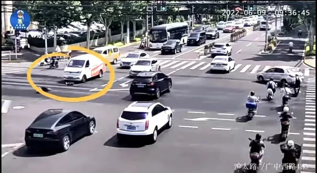 2022年6月9日,上海静安区,赵某驾驶电动自行车行至路口时遇红灯,但仍无视信号直接进入路口。此时,相交方向绿灯放行,赵某在密集车流中连续与两辆汽车擦身而过,最终与一辆刚起步的轻型货车发生碰撞。