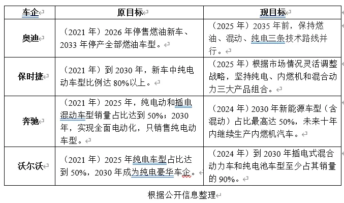 2024年以来,欧洲车企纷纷表示全面电动化不现实,集体“踩刹车”。“禁燃令”松绑后,或有更多车企调整电动化转型目标。