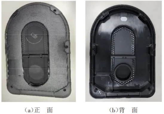 模具生产机台采用1000 kN注塑机,塑件材料为Kingfa JH960-6010,并对塑件进行晒纹处理。注塑机料筒温度设置为240℃,热流道温度设置为230 ℃,模具温度设置为 60℃。保压阶段注射压力降至注射压力的80%,保压时间设置为10s;保压结束后2s由80%降至0,完成塑件注射成型。