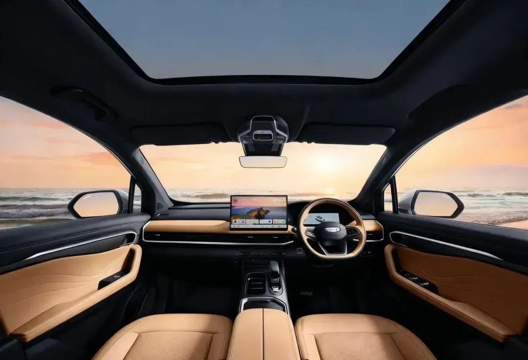 内饰这块变化也不算大,整体风格跟现款保持一致,主要是一些细节的调整,比如门板上的绗线纹路换了个样式,这种小改动其实挺常见的,改款车型嘛,大方向不动,细节修修补补意思意思。中控那块14.6英寸悬浮屏还在,三辐方向盘也没变,空调出风口做成贯穿式的,视觉效果还是挺不错的。至于车机系统搭载的是Flyme Auto,这个系统用过的人评价比较两极,有人觉得流畅度可以,有人觉得功能还需要完善,我个人认为智能座舱这块吉利跟华为那种肯定比不了,但应付日常使用问题不大。