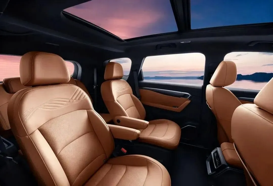 这次新款豪越L提供5座,6座和7座三种座椅布局,这个配置策略还是挺聪明的,覆盖的人群更广了。现款只有6座和7座,有些年轻家庭或者小夫妻可能就觉得7座太多用不上,维护成本还高,现在出个5座版本正好填补这个空白。