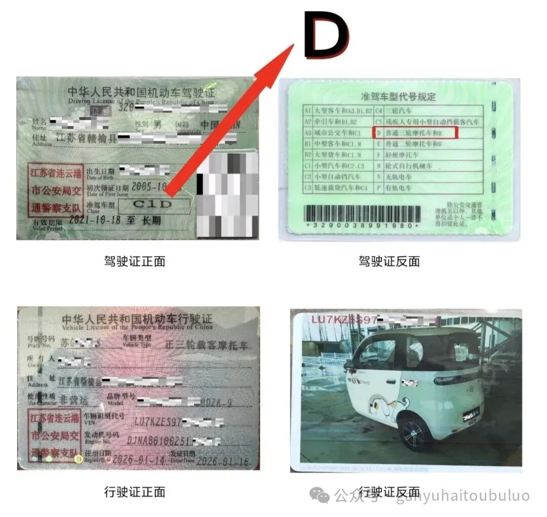 注:驾驶符合标准的电动三轮车需持有相应准驾车型为D的驾驶证;