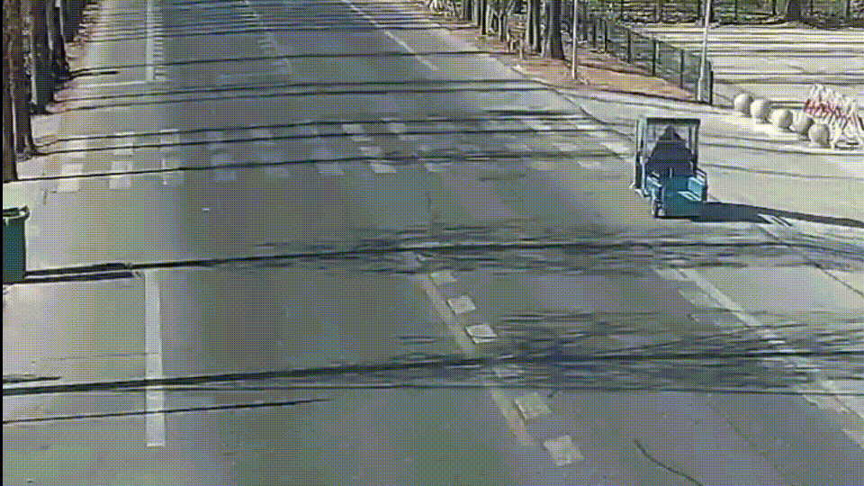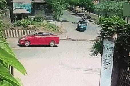 行车记录仪显示,一辆电动三轮车径直横穿道路,与垂直方向的一辆小轿车猛烈碰撞,电动三轮车连人带车被撞滑行数米远……