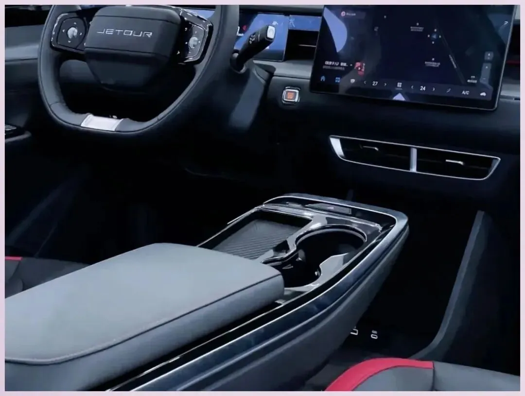 坐进车内,你绝对不会觉得这是一台10万级的SUV——黑红拼色的内饰直接把战斗氛围拉满,12.8英寸的悬浮大屏位置刚好,操作起来也不卡顿。最让我惊喜的是华为HiCar互联,语音控制‘你好捷途’,反应速度比很多合资车的车机快太多,导航、放歌、调空调,一句话的事,比你自己动手还方便。