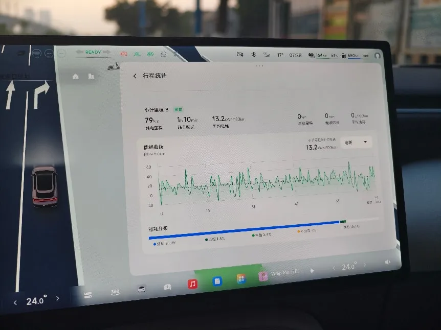 电驱效率高达92%,搭配50万车主的真实行驶数据,以及AI能耗管理策略,让这台车的纯电能耗仅为14kWh/100km,亏电油耗仅为5.9L/100km。不得不说,55.8kWh的电池是真的任性,这个价位的增程/混动SUV,有430km纯电续航真的非常夸张,智己LS6也宣传自己大电池增程,但只有370km纯电续航,而理想L6甚至只有区区212km纯电续航。当然,续航长是一个方面,扎不扎实也很重要。我们能耗进行了实测,以下是实测的成绩。