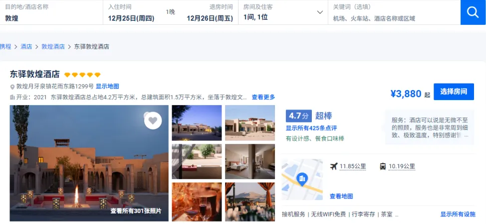 还可付费3500元/人升级2晚连住“沙漠文化瑰宝”东驿敦煌酒店景观大床房/双床房,最美野奢沙漠酒店,当地最贵,国内顶奢级别。