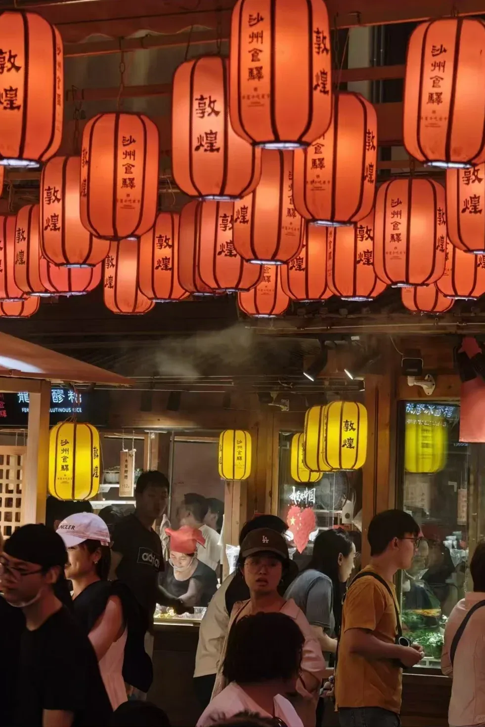 又名沙洲夜市,是整个西北地区最火的夜市,以美食为引、文化为魂,将千年丝路繁华浓缩于烟火市井中,成为每一位游客来此感受敦煌魅力的“必选项”。