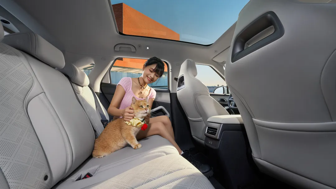 在空间方面,元 UP 堪称“准 A 级大空间”的典范。长宽高 4310/1830/1675mm,轴距 2620mm,“得房率”碾压同级。后排座椅 4:6 放倒后,行李箱空间达1320L,无论是通勤、郊游还是探店,都能轻松应对,实用性拉满。